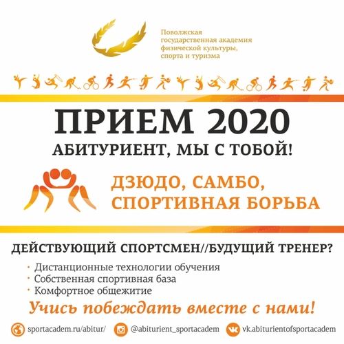 ВНИМАНИЕ! В ФГБОУ ВО «Поволжская государственная академия физической культуры, спорта и туризма» стартует приемная кампания 2020 года. В этом году она пройдет полностью в дистанционном режиме.